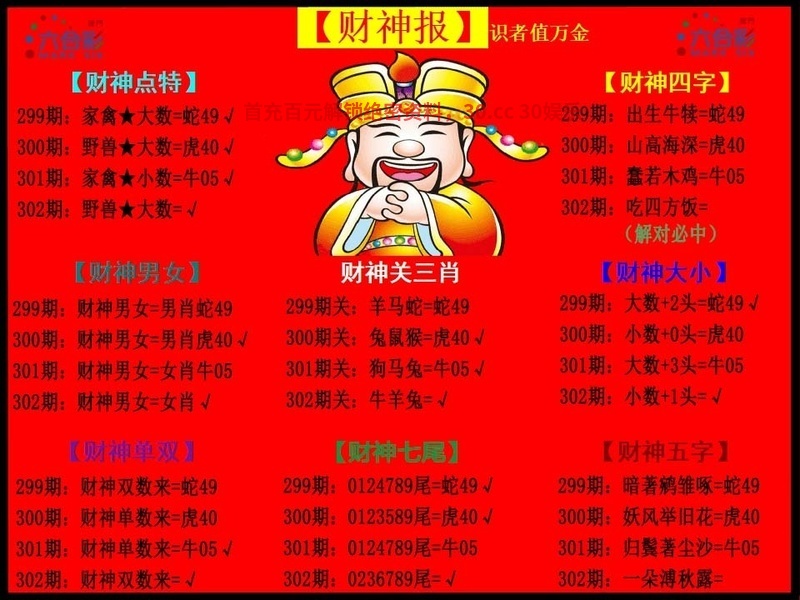 | 302期: 26333澳门玄机内幕三连肖必中 | |||